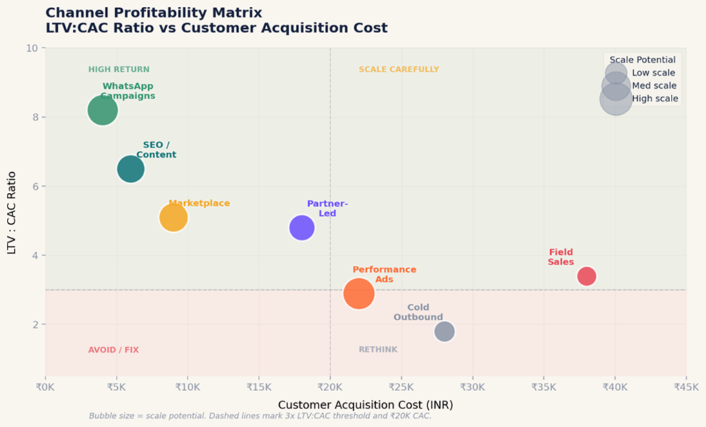 In 2026, successful Indian startups don’t choose between digital and offline, paid and organic, direct and partner-led. They orchestrate a channel mix optimized for their specific ICP and market. Start narrow. Test rigorously. Scale what works. Kill what doesn’t.